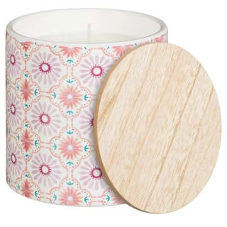 A beautiful printed candle with a stylish wooden lid to enhance the look and feel of your garden.