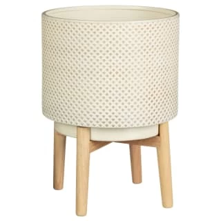 B&M Natural Textured Ceramic Planter With Wooden Stand