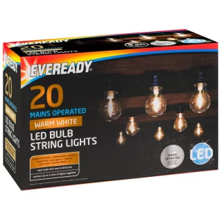 Eveready Mains Powered LED Bulb String Lights 20pk – Warm White